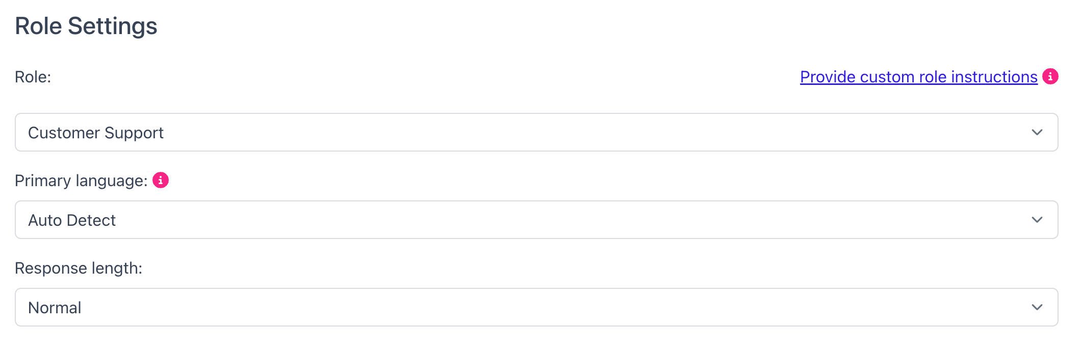 Select your chatbot in the main chatbots dashboard, click **Settings, **in the left menu select Role