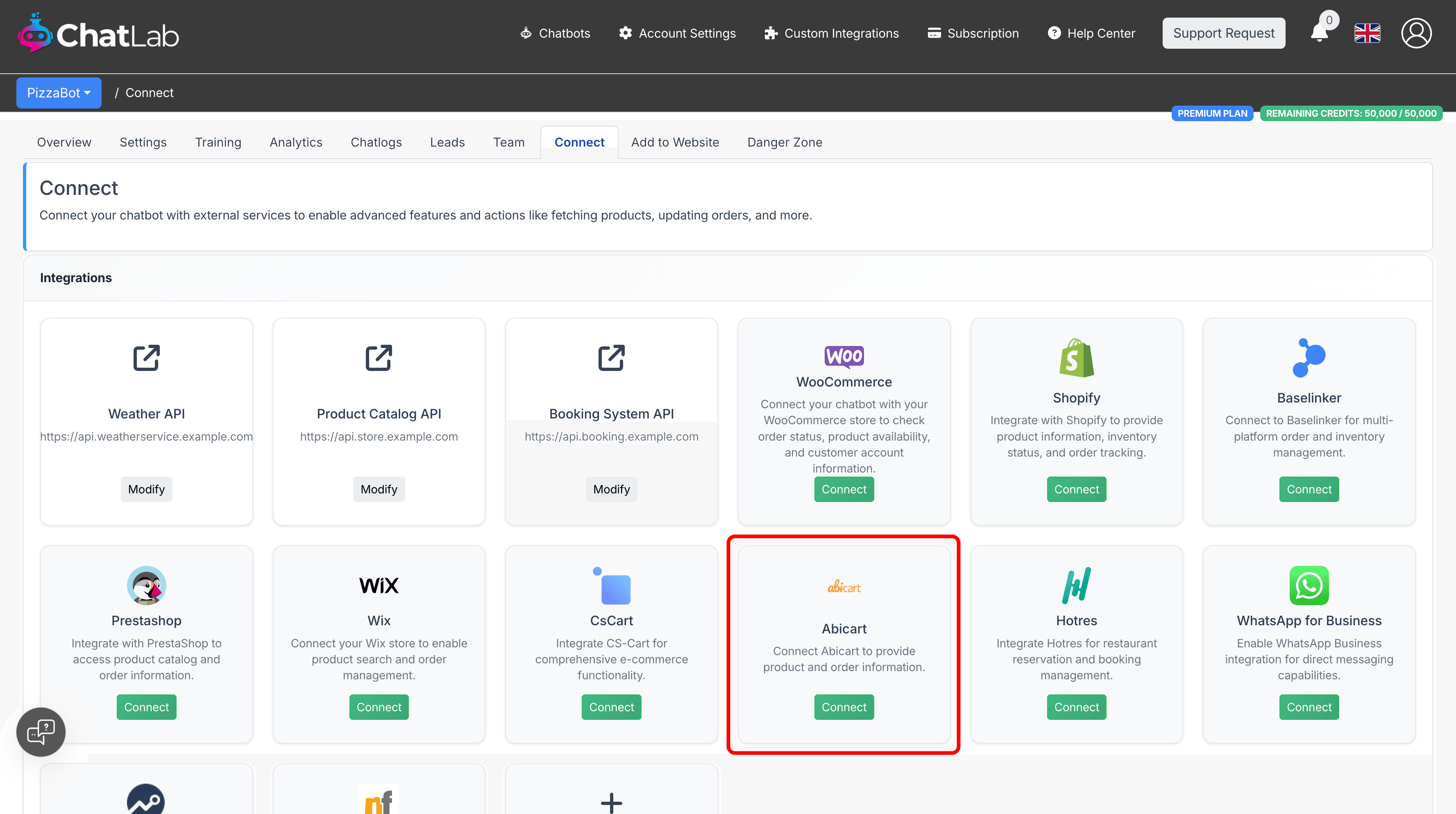 Step 2: Connect Abicart in ChatLab