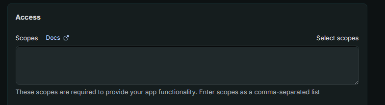 - Once created, scroll to the Access section and click Select scopes