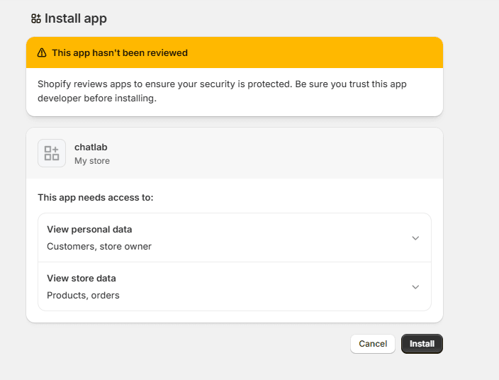 - Select your store and confirm by clicking Install