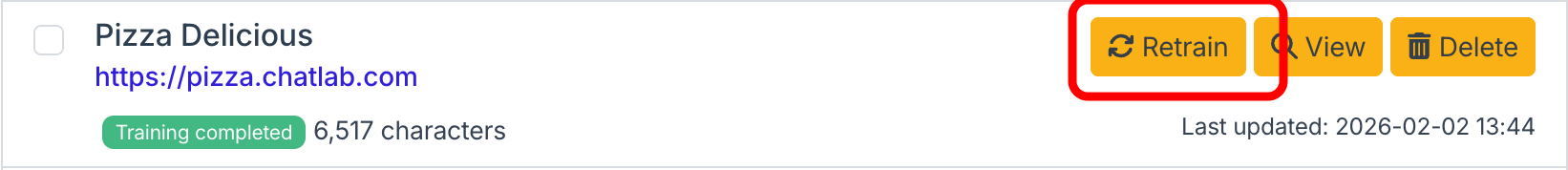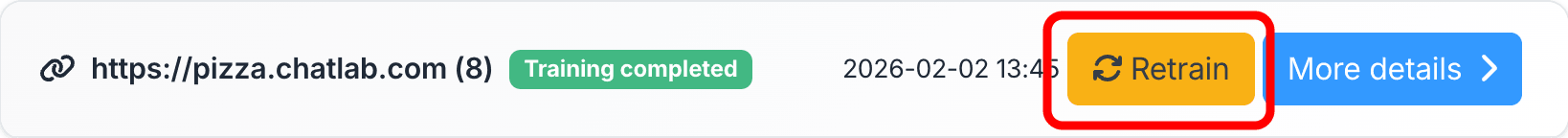 Re-training lets you refresh your chatbot's knowledge by re-reading website URLs and updating the training data whenever the source content changes.