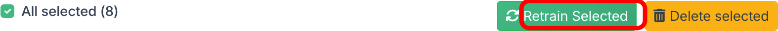 Select the checkboxes next to the links you want to retrain (or use Select all), then click Retrain Selected in the header.